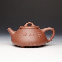 【子冶石瓢壶】沈雅静紫砂壶 实力派紫砂陶艺家 原矿底槽清泥料 全手工紫砂作品 刻绘梅花报春